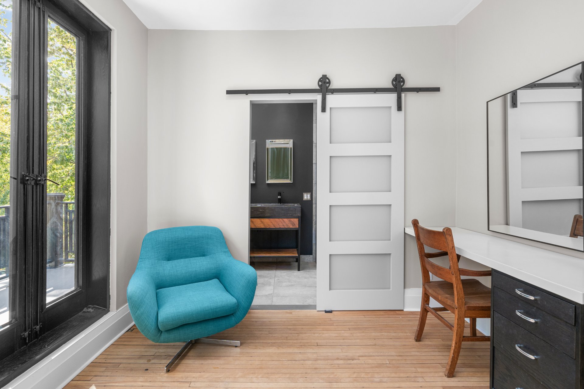 La lumière naturelle inonde les généreuses fenêtres,